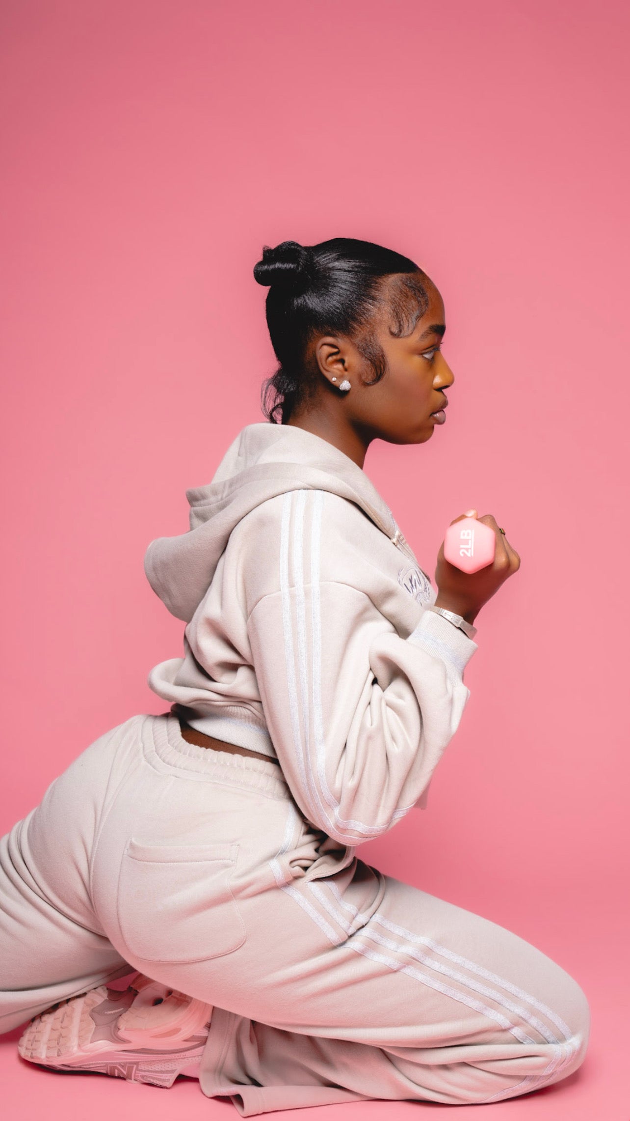 Designed with a refined neutral-tone base and light grey detailing, these sweatpants feature three signature grey stripes along the sides and a subtle grey logo on the right pocket. Thoughtfully constructed with two front pockets and an additional back pocket for everyday functionality, this tall girl friendly design offers an extended, flattering fit! These sweatpants deliver both style and comfort for your everyday errands and activities.